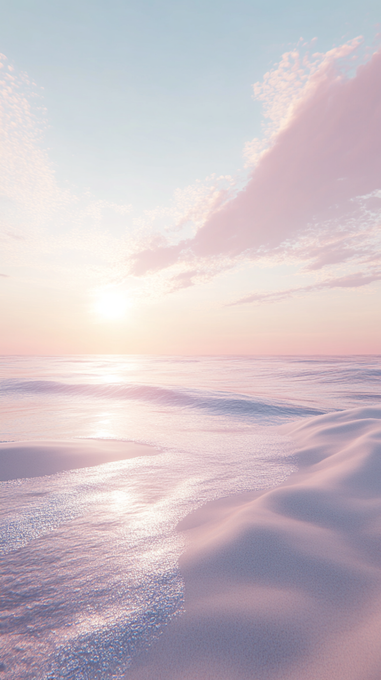 Soft pastel esthetic pink beach in calm vibe with sunset