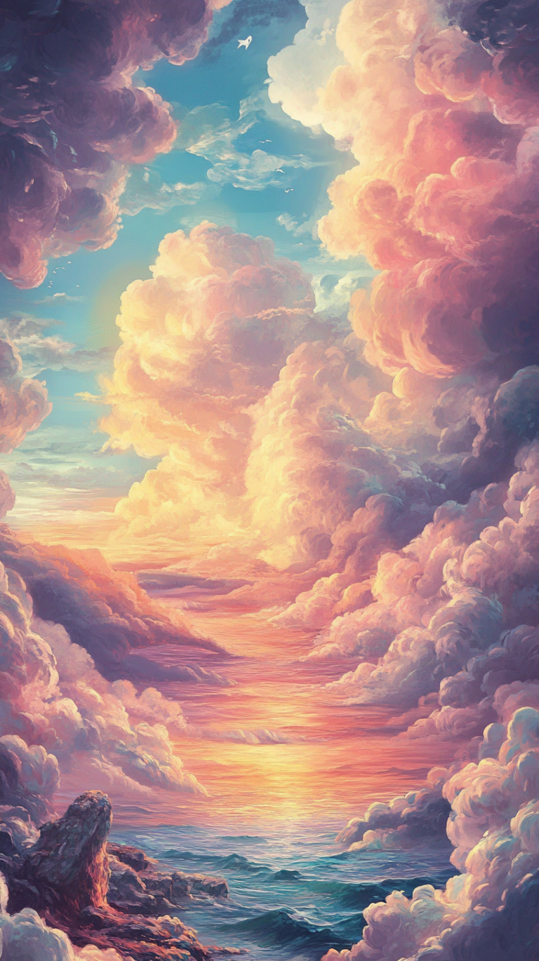Pastel sunset esthetic beach with soft cotton cloud wallpapers